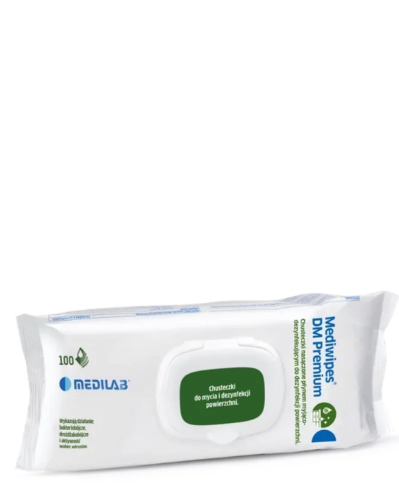 MediLab MediWipes DM Premium – Chusteczki do dezynfekcji powierzchni bez alkoholu, 100 szt. (flow-pack)